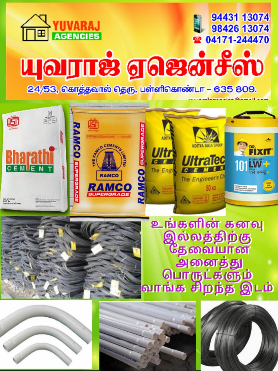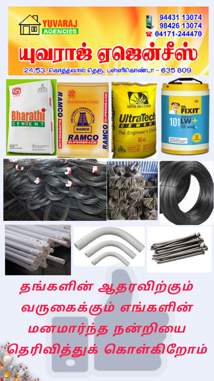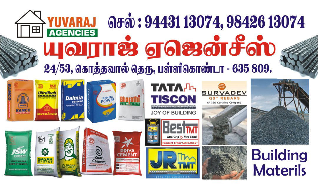 All Kinds of Building Materials available Best products Accurate price Awesome quality so to built your dream home strong right place to choose your building materials Yuvaraj Agencies Pallikonda..